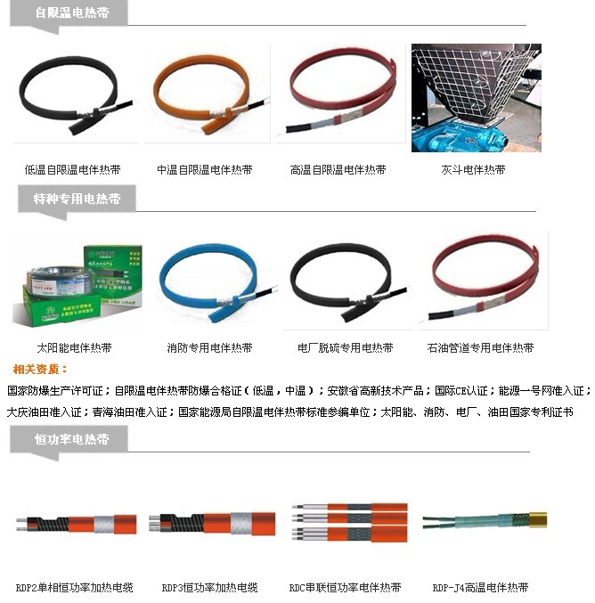 恒功率電熱帶;針對與危險場合的高溫伴熱,其中安徽環瑞研發了船用專用電熱帶,是專門針對海洋船舶、海上石油鉆井平臺和其它惡劣環境的爆炸性氣體場合專用的,具有很好的阻燃性、耐油性、絕緣性,可承受潮濕空氣、鹽霧等環境的考驗。