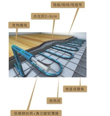 發(fā)熱電纜電地暖系統(tǒng)由發(fā)熱電纜和溫控器兩部分組成,發(fā)熱電纜鋪設(shè)于地面中,溫控器安裝于墻面上。當(dāng)室內(nèi)環(huán)境溫度或地面溫度低于溫控器設(shè)定的溫度時(shí),溫控器接通電源,發(fā)熱電纜通電后開(kāi)始發(fā)熱升溫,發(fā)出的熱量被覆蓋著的水泥層吸收,然后均勻地加熱室內(nèi)空氣,還有一部分熱量以遠(yuǎn)紅外輻射的方式直接釋放到室內(nèi)。該種方式的采暖系統(tǒng)把整個(gè)地面作為散熱器,室內(nèi)溫度上層低而下層高,有溫足而頂涼的感受,使您感到舒適而自然。