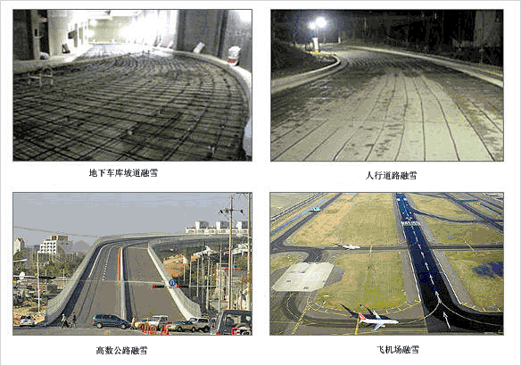 潔凈的人行路面,使人們活動無冰雪困擾;避免傳統(tǒng)道路除冰雪方式帶來的昂貴費(fèi)用及除雪劑給路面帶來的損害 ;有效的融化坡道、階梯、直升機(jī)起降站和其它路面上的冰雪,清除危險(xiǎn),減少不便;