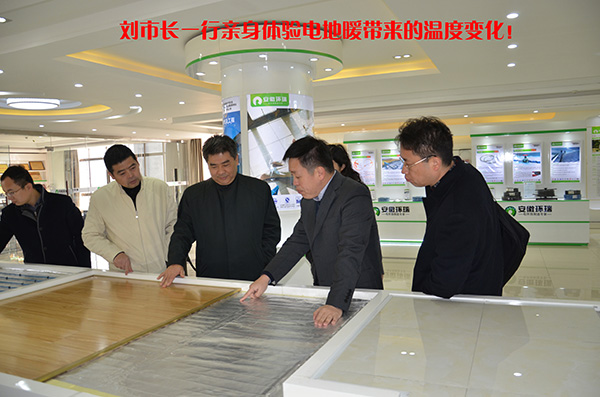 市領導一行深入辦公區域、原料生產車間、電地暖生產車間、電地席生產車間以及成品包裝車間現場檢查指導各項工作,詳細的查看了解我司的人員管理、安全生產、產品質量及工作流程等情況。