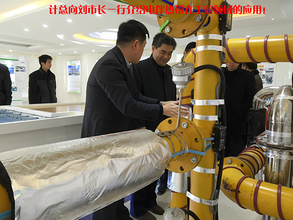 在視察過程中詳細聽取了計總關于電地暖核心技術在產品的運用、產品的安全生產保障、生產各項工藝流程以及后期的技術革新的講解,并就國內、國外的市場電地暖情況進行了進一步的匯報。