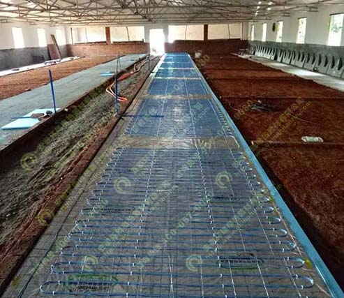 發(fā)熱電纜養(yǎng)殖保溫系統(tǒng)是將220V電源連接埋置在混凝土中的發(fā)熱電纜,發(fā)熱電纜發(fā)熱,將熱量傳至混凝土中并儲熱,然后熱量由混凝土通過熱輻射的形式向上緩慢均勻釋放,從而達(dá)到下暖上涼采暖效果。